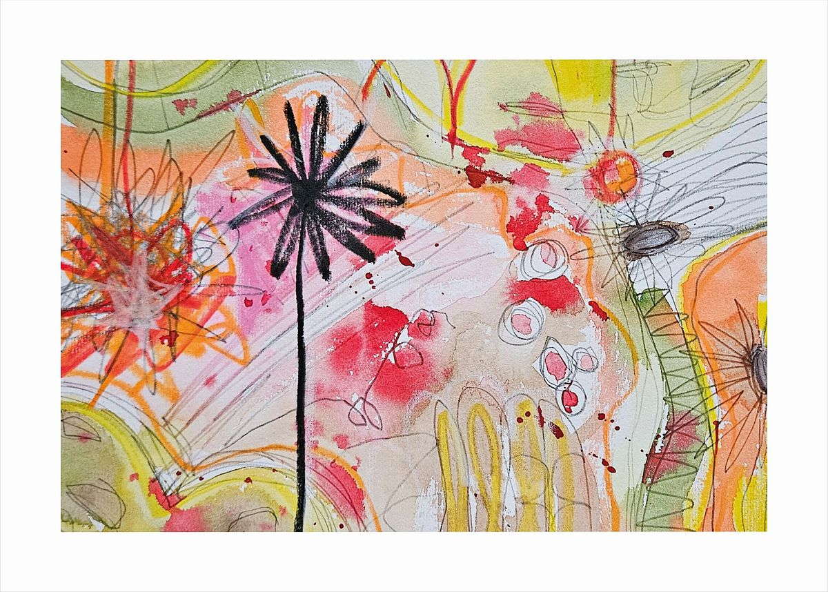 Ich arbeite intuitiv. Ich lasse mich einfach malen. Meistens zu Musik. Und ich lasse mich überraschen, was sich durch mich auf dem Papier zeigen will.