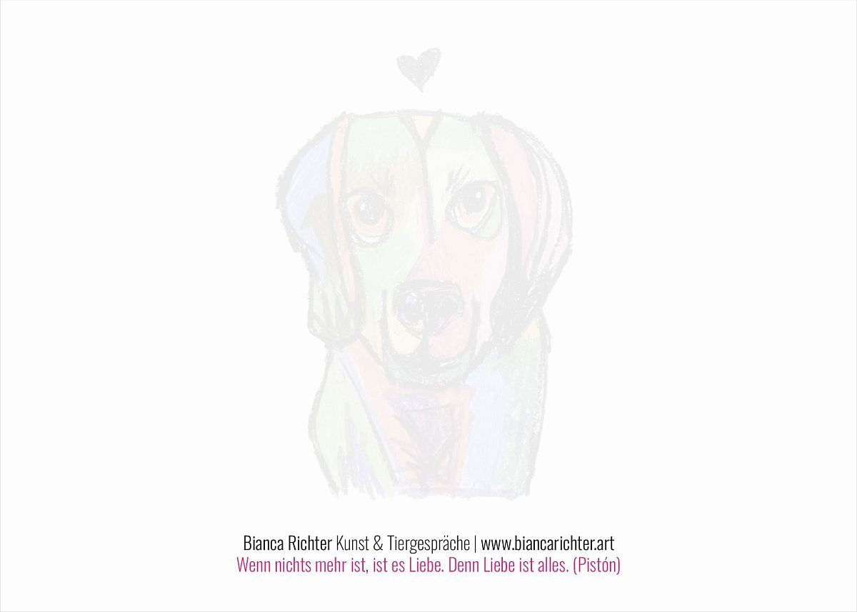 Mein Postkartenset (DIN A6) enthält drei Kunstmotive und zwei Tierbotschaften aus dem Jenseits.